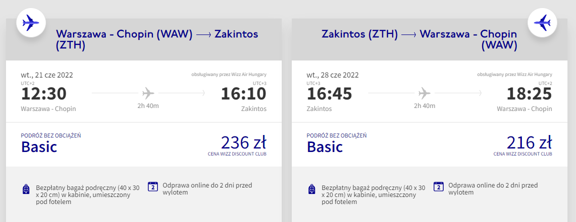 Linia lotnicza: Wizz Air, cena dla posiadaczy WDC