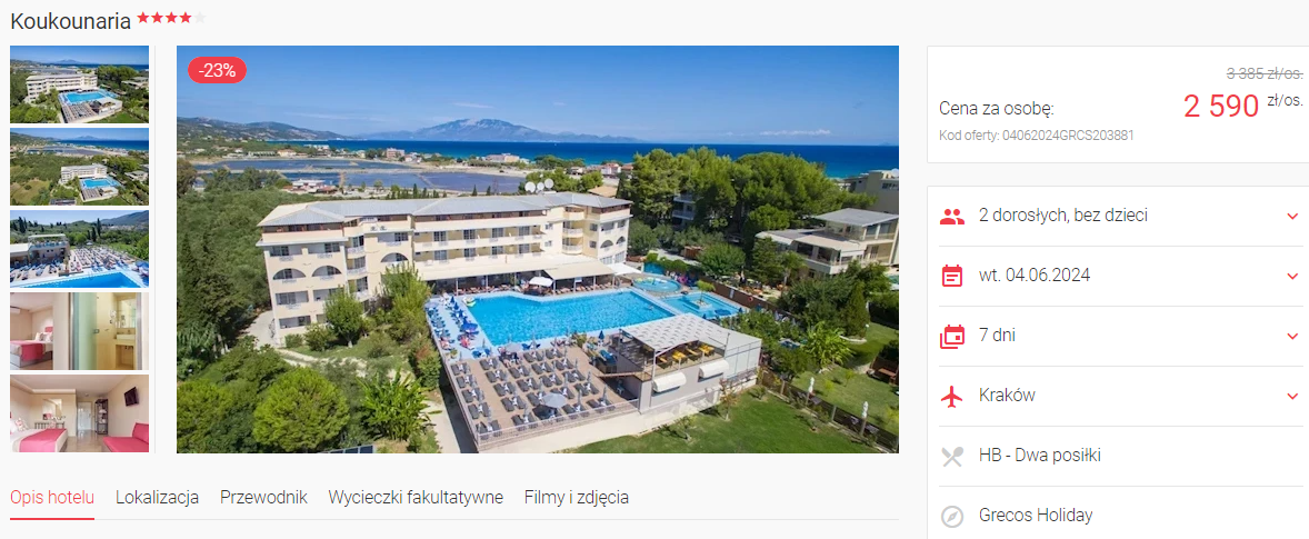Zakintos: tygodniowe wczasy w 4* hotelu z wyżywieniem od 2590 PLN. Wyloty z 8 miast