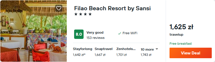 Wybrałam dla was noclegi w 4* hotelu Filao Beach Resort by Sansi. Odkryty basen oraz ogród palmowy będą świetnymi miejscami na relaks, a w cenę zakwaterowania wliczono codzienne śniadania.