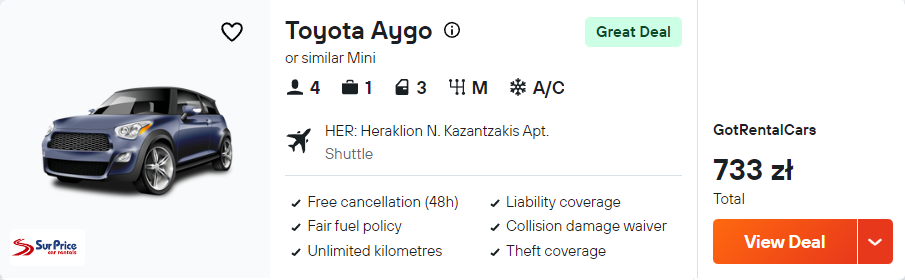Aby zobaczyć wszystkie atrakcje na Krecie, wypożycz samochód już na lotnisku w Heraklionie.