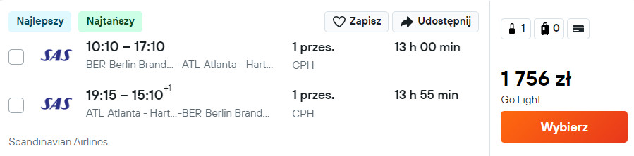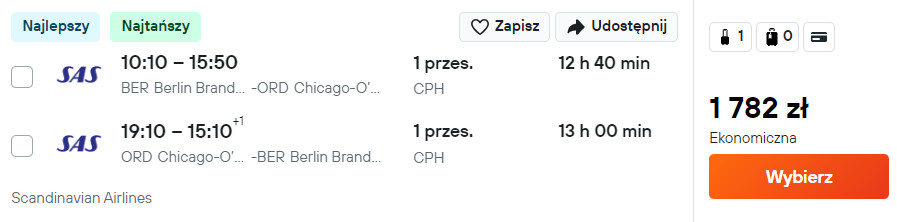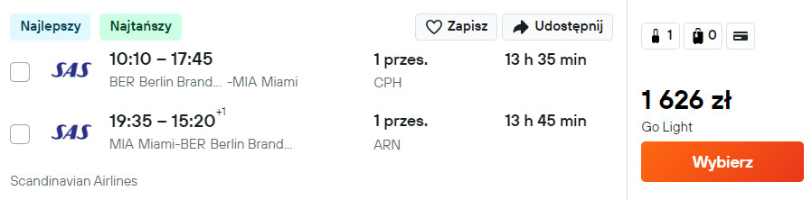 Na każdej trasie polecisz linią Scandinavian Airlines System z wygodnymi przesiadkami w Kopenhadze lub Sztokholmie. W cenie zabrać ze sobą możesz bagaż podręczny oraz przedmiot osobisty (mały plecak lub damską torebkę).