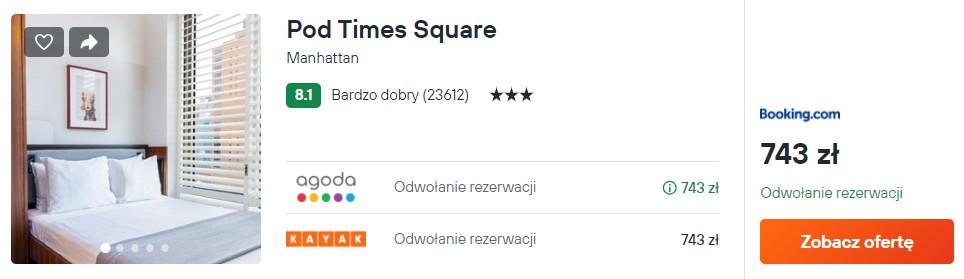 Natomiast mieście, które nigdy nie zasypia, zatrzymaj się w 3* hotelu Pod Times Square, który położony jest 600 metrów od słynnego placu Times Square. W każdym pokoju jest łazienka z prysznicem oraz podstawowe przybory toaletowe.