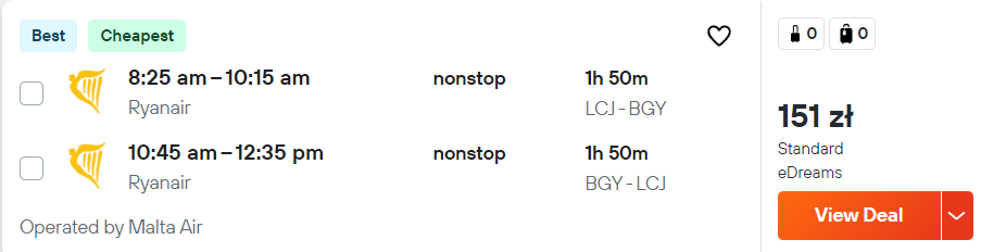 Bez dodatkowych opłat podróżować będziesz z samym bagażem podręcznym. Jako miejsce wylotu możesz wybrać jedno z miast w Polsce (szczegóły poniżej).