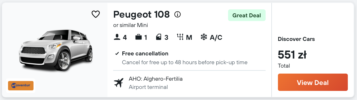 Aby zobaczyć wszystkie atrakcje na Sardynii, zarezerwujcie auto już na lotnisku w Alghero.