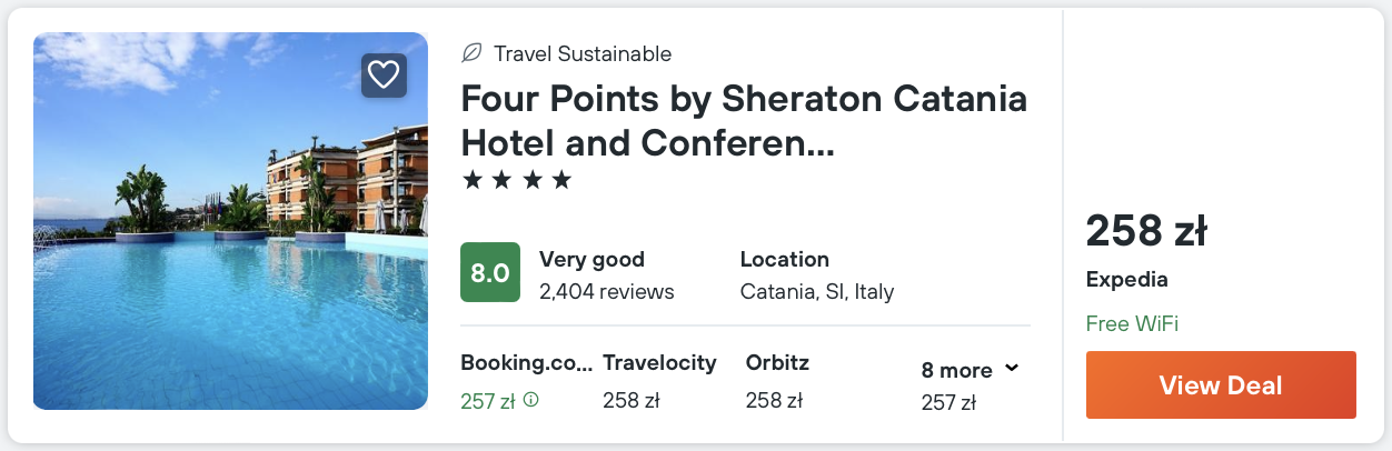 Na Sycylii polecam zatrzymać się w 4* Four Points by Sheraton Catania Hotel, który oferuje panoramiczny widok na Etnę i Morze Jońskie.