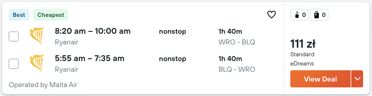 W podróż polecicie na pokładzie samolotów linii lotniczej Ryanair z Katowic, Krakowa, Warszawy (Modlin), Poznania i Wrocławia. Możecie wybrać się do Forli, Wenecji, Katanii, Alghero, Ankony, Bergamo, Bari, Rzymu i Bolonii.
