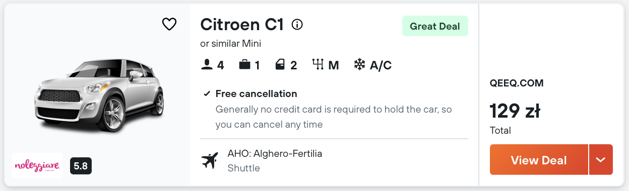 Aby zobaczyć wszystkie atrakcje na Sardynii, wypożyczcie samochód już na lotnisku w Alghero.