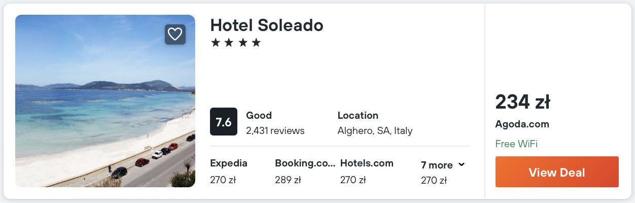 Natomiast na Sardynii postawcie na noclegi w 4* hotelu Soleado, który położony jest blisko wybrzeża Morza Śródziemnego.
