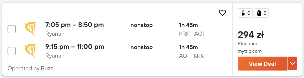 Na wycieczkę polecicie na pokładzie samolotów linii lotniczej Ryanair z Katowic, Wrocławia, Warszawy (Modlin), Krakowa i Gdańska. Możecie udać się do Bergamo, Wenecji, Katanii, Alghero, Rzymu, Bolonii i Ankony.
