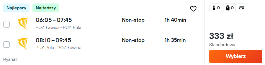 Wszystkie poniższe loty to bezpośrednie podróże, które swoim terminem obejmują kalendarzowe lato. Skorzystasz z usług linii lotniczej Ryanair i Wizz Air. Możesz wybrać się do: Włoch, Chorwacji, Grecji, Bułgarii, Gruzji i na Łotwę. Najtańsze bilety dostępne są od 177 PLN/osobę.