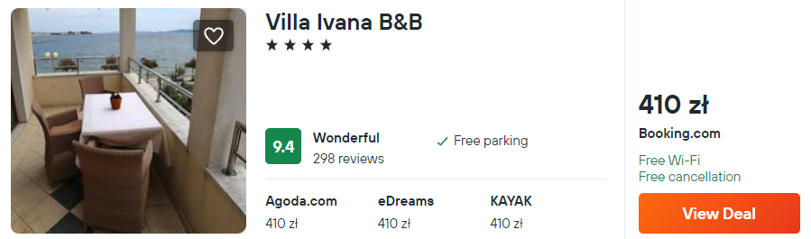 W Zadarze rekomenduję 4* Villa Ivana B&B. Obiekt jest świetnie oceniany przez dotychczasowych gości i rozpościerają się z niego malownicze widoki na morze.