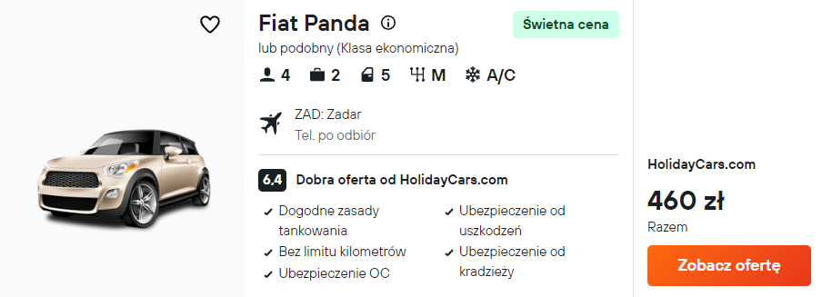 Najlepszym sposobem na zwiedzanie Dalmacji jest wynajęcie samochodu. Polecam to zrobić już na lotnisku w Zadarze.