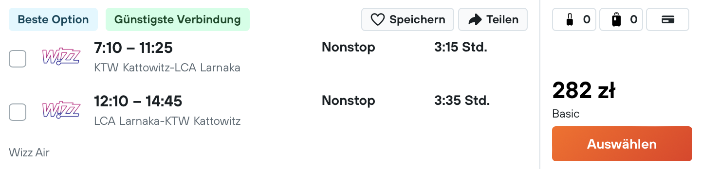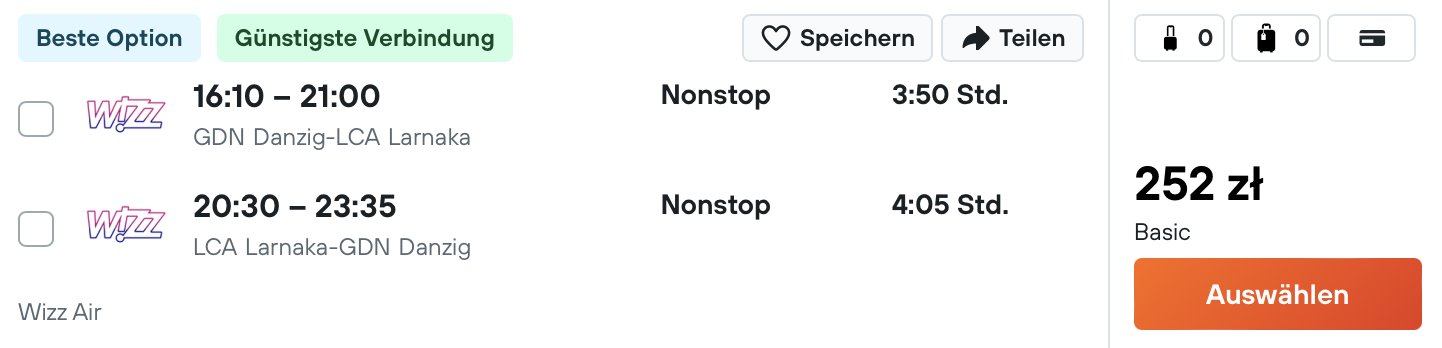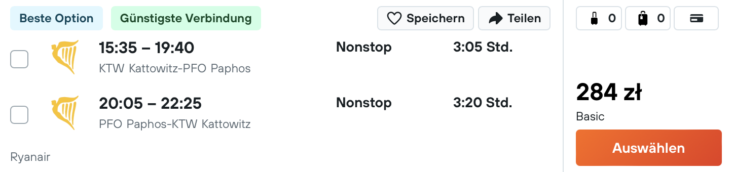 Do Pafos i Larnaki podróżować będziesz w styczniu przyszłego roku. W obie strony polecisz bezpośrednio linią Ryanair lub Wizz Air z bagażem podręcznym.