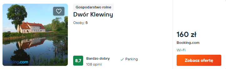 Na początek propozycja niedrogiego zakwaterowania nad jeziorem. Dwór Klewiny to klimatyczny obiekt wypoczynkowy zlokalizowany wewnątrz odnowionej posiadłości.