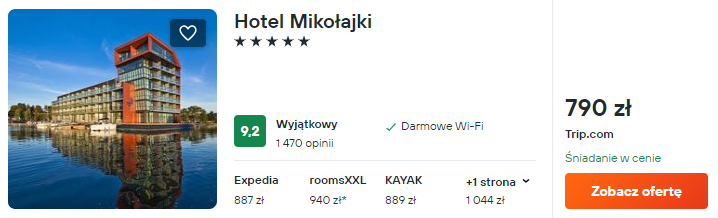 Na koniec propozycja z wyższej półki. 5* Hotel Mikołajki to luksusowy obiekt wypoczynkowy, który spełni oczekiwania nawet najbardziej wymagających gości.