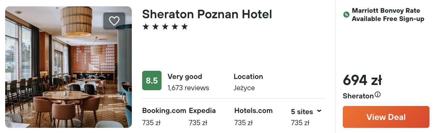 W Poznaniu dobrym wyborem będzie 5* hotel Sheraton. Obiekt mieści się w pobliżu centrum miasta i będzie doskonałą bazą wypadową do zwiedzania miasta.