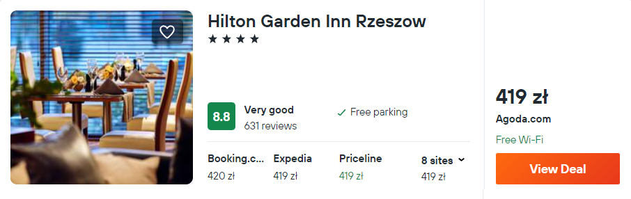 W Rzeszowie postaw na 4* hotelu Hilton Garden Inn. Dotychczasowi goście rewelacyjnie oceniają pobyt w tym miejscu.