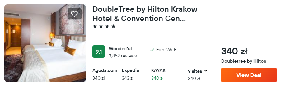 Nieco droższe będzie zakwaterowanie w 4* DoubleTree by Hilton w Krakowie. W pobliżu znajduje się Tauron Arena oraz galeria handlowa. Na miejscu odpoczniesz nad basenem.