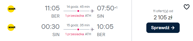 W podróż do Azji udasz się dopiero na przełomie marca i kwietnia przyszłego roku. Polecisz tam z Berlina linią Scoot. Po zaplanowany jest stop techniczny w Atenach (bez opuszczania samolotu) przesiadka w Singapurze. Lotnisko Changi to w moje opinii atrakcja sama w sobie. Więcej o najlepszym porcie lotniczym świata przeczytasz w tym miejscu.