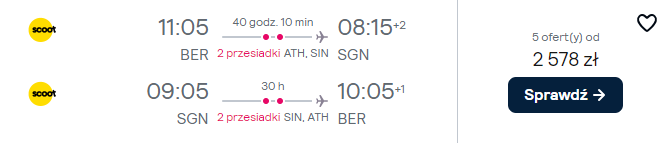 W poniższym zestawieniu znajdziesz propozycję lotów do Tajlandii, Malezji, Singapuru, do Indonezji, Wietnamu oraz na Filipiny.