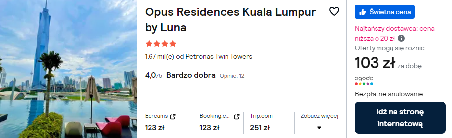 Malezyjska stolica to miejsce, gdzie warto zarezerwować noclegi w hotelu z basenem typu infinity na dachu budynku! Postaw tam na 4* Opus Residences Kuala Lumpur by Luna.