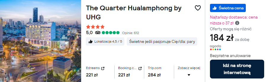 W Bangkoku wybierz 4* hotel The Quarter Hualamphong by UHG. Lokalizacja u bram China Town oznacza świetną bazę wypadową oraz bliskie sąsiedztwo najlepszego w mojej opinii nocnego rynku w mieście.