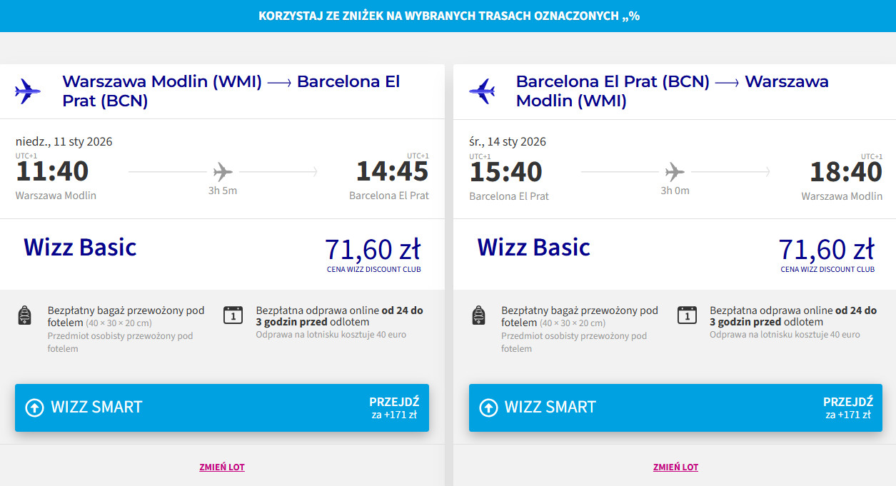 Warszawa Modlin – Barcelona – Warszawa Modlin »