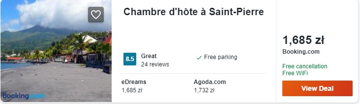 Na Martynice zatrzymajcie się w świetnie ocenianym Chambre d’hôte à Saint-Pierre. To, co wyróżnia ten obiekt na tle innych, to świetna lokalizacja tuż przy samej plaży Saint-Pierre. Do dyspozycji gości oddano pokoje z prywatnymi łazienkami.