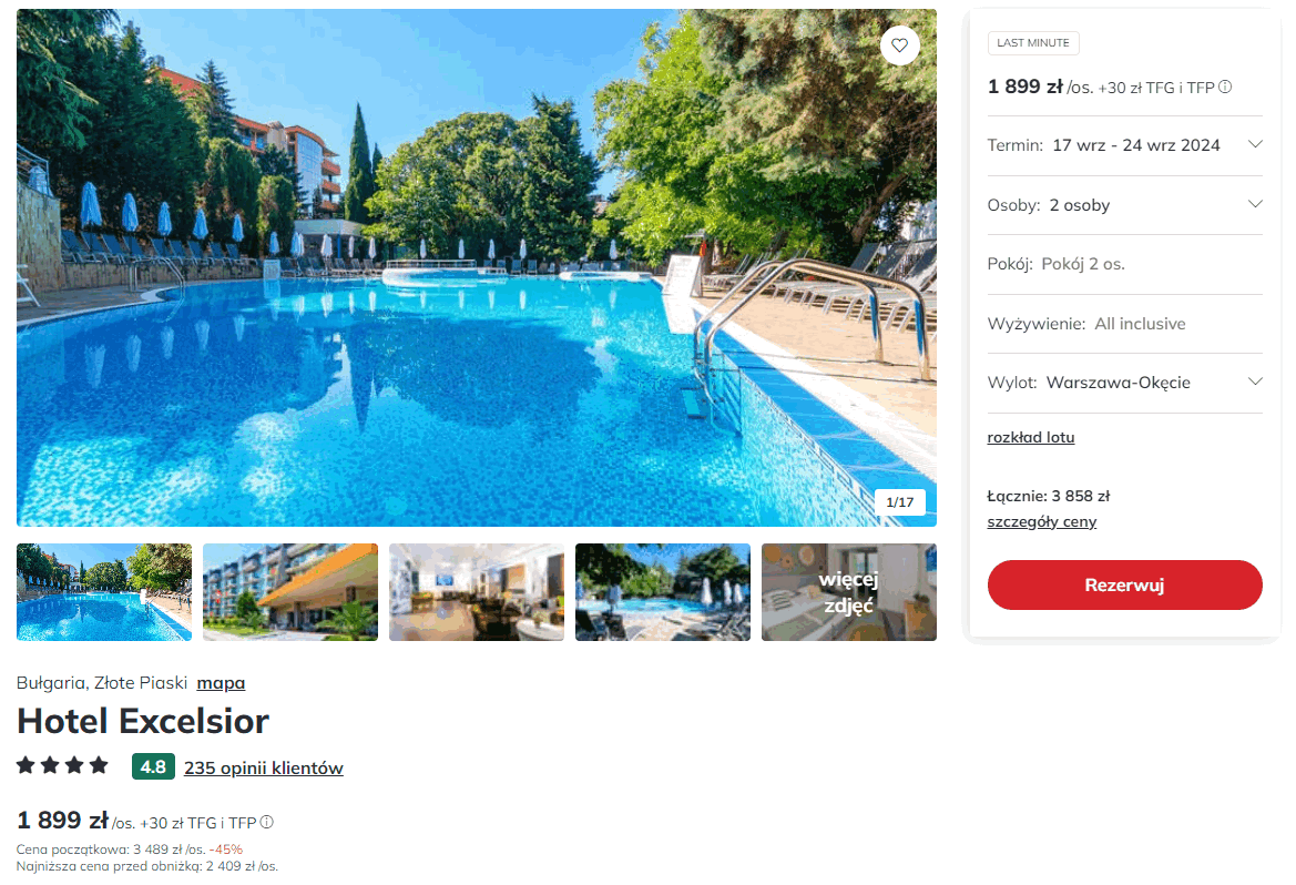 Lato: tygodniowe all inclusive w 4* hotelu w Złotych Piaskach z Warszawy za 1899 PLN