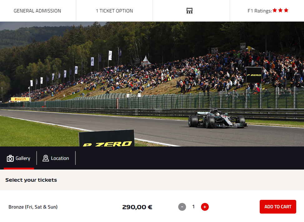 Bilety na wyścig kupisz na oficjalnej stronie Formuły 1. Za 3-dniową wejściówkę (piątek – niedziela) zapłacisz już od 290 EUR (ok. 1237 PLN). W ramach proponowanej opcji General Admission będziesz mógł przemieszczać się wokół toru, w tym również do miejsc z widokiem na prostą Kemmel, wieńczącą pokonywaną bez odjęcia i „na ślepo” legendarną sekwencję Eau Rouge.