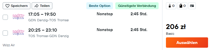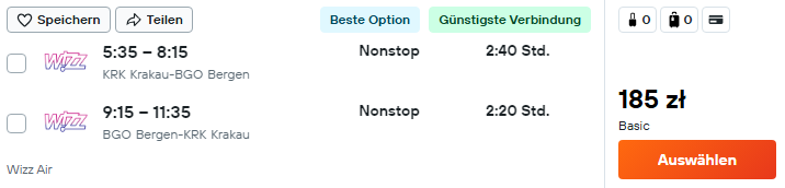 Poniżej znajdziesz zebrane przeze mnie najciekawsze propozycje lotów do Norwegii z 3 miast w Polsce. Bilety dostępne są dla wszystkich (bez konieczności posiadania członkostwa w Wizz Discount Club), a najtańsze zarezerwujesz już za 122 PLN. Najniższą cenę otrzymasz, podróżując z bagażem podręcznym.