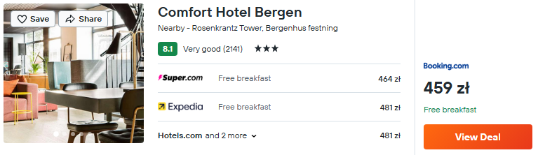Wybierasz się do Bergen? W mieście zatrzymaj się w 3* hotelu Comfort. W cenie zakwaterowania otrzymasz śniadania.