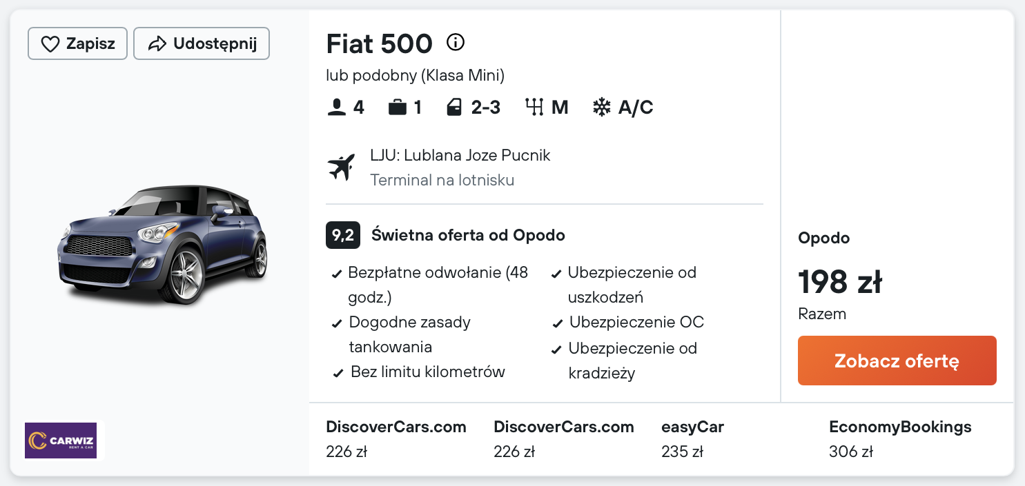 Za pakiet lotów oraz auto na 2 dni zapłacisz 584 PLN za osobę, pod warunkiem że będziesz podróżować w parze.