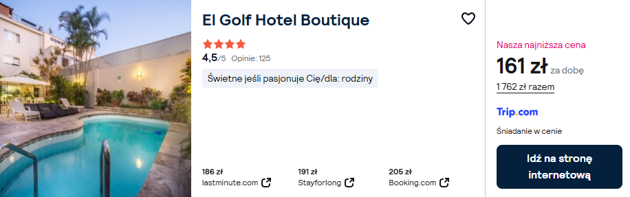 Natomiast w stolicy Peru rekomenduję 4* hotel El Golf. Na jego terenie znajdziesz między innymi basem, bar orz restaurację. Dodatkowo w cenę noclegu wliczone zostały śniadania.