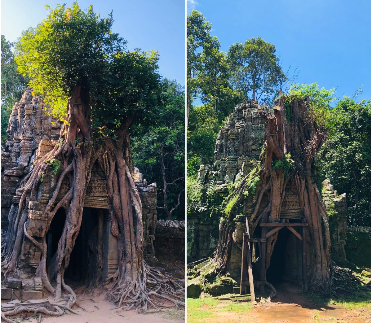 Moja ulubiona świątynia? To spokojna, położona nieco na uboczu Ta Som. Nie znajdziecie tam tłumów przewijających się przez wspomniane wcześniej, bardziej popularne stanowiska archeologiczne. Zostaniecie za to wynagrodzeni możliwością niespiesznego zwiedzenia tego niezwykłego miejsca. Spokój, który zdaje się emanować z tamtejszych murów oraz porastających ich drzew był dla mnie doświadczeniem niemal mistycznym.